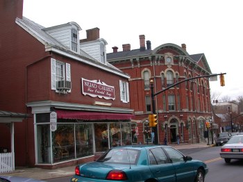 It almost did happen this way, though. When a new shopping center started drawing customers away from the old part of town in the early 1960's, the historic section of town began to decay. The County tried to step in to restore the area with urban renewal funds, but their plan included razing more than 20 buildings to make room for more modern structures. The Fountain House, a landmark of town (see photos below) was to be torn down to make room for a parking lot. Fortunately, the citizens of Doylestown rejected that plan and the town has blossomed in the years since.