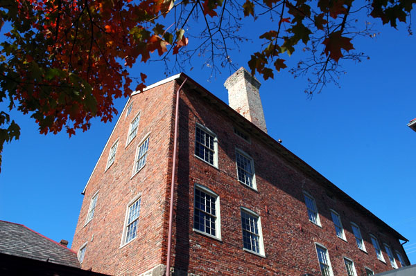 Another view of the Agricultural Works buidling. The historic marker in front states, "Constructed in 1867, this factory produced farm machinery and ironwork and was, for many years, the area's largest employer. It sold products around the world and, like other midsize metalworking firms, contributed to America's industrial growth. In its declining years it was owned by Genera Motors' Sampson Tractor Division (1920-21) and others. Ceased manufacturing operations in 1937."