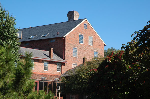 This is the Doylestown Agricultural Works building. It was originally built in 1867, and was partly rebuilt in 1913 after a fire. It sat in ruins for many years until the 1980's when it was completely renovated and turned into retail shops. It is located across the street from the train station.